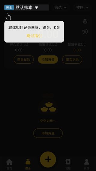 5、然后就可以根据指引新建账本来实时记录你的贵金属金融产品的收益情况。