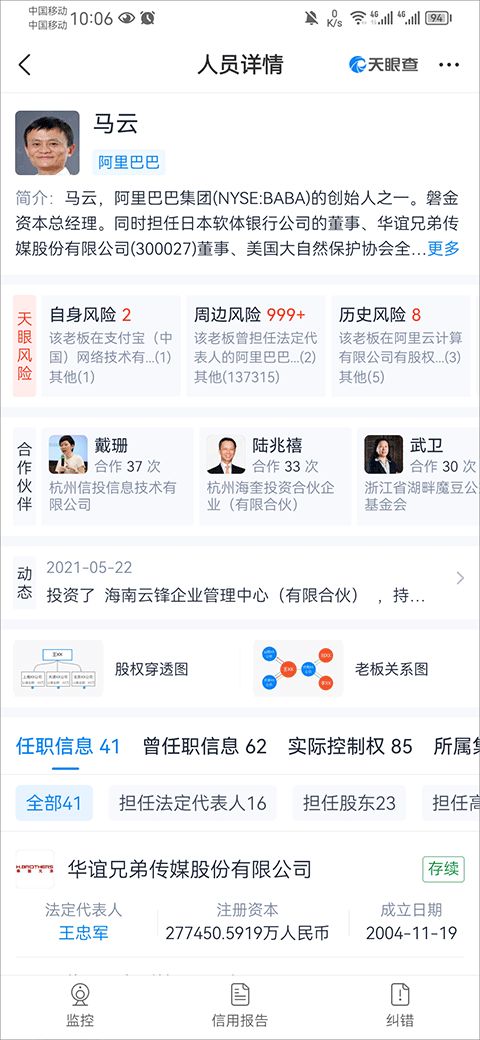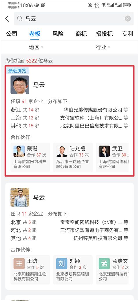 3、进入后就可以看到该老板的个人信息以及名下全部公司、合作伙伴等。