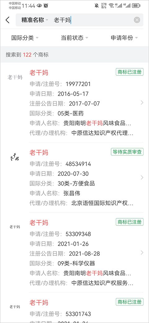 3、待搜索结果出来后,就可以对该商标注册信息进行了解啦。