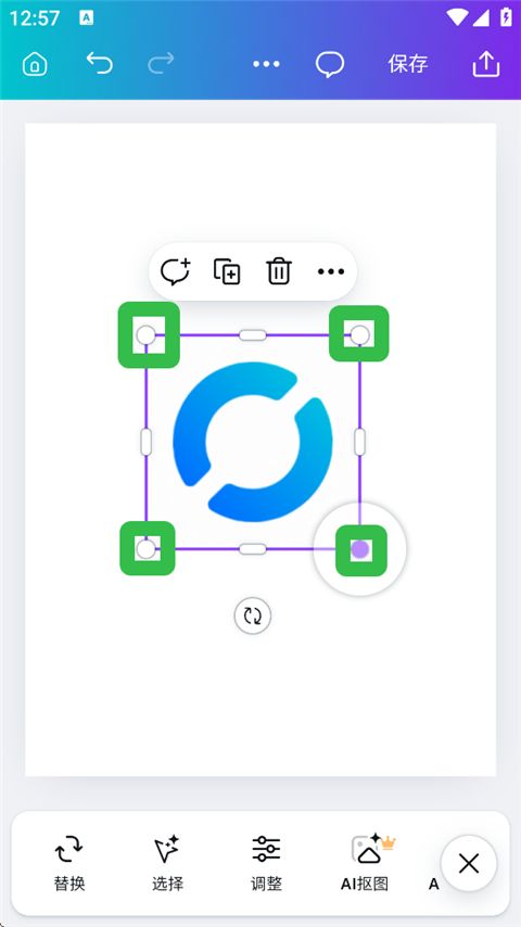 1、下载打开canva可画app,打开设计,选中想编辑的图片。