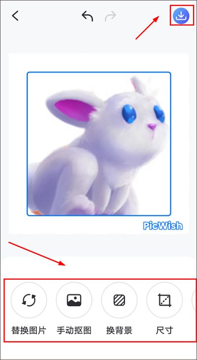 图片抠图成功后,用户可以根据自己的需求,对图片进行换背景,裁剪尺寸,加阴影等操作,改动完成后,点击保存即可保存在手机内。