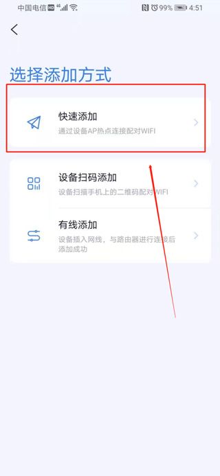 4、把 wifi摄像头 通上电,约几秒钟 wifi摄像头做左右和上下转动的动作,随即发出语提示: "摄像头启动完成 ,等待配网添加",对着wifi摄像头上的贴着的设备二维码的图片扫一下,当扫出wifi摄像头的设备二维码后,就转到了如下图界面: