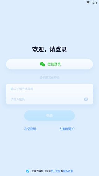 2、首次进入软件先注册吧 ,选点 "注册新帐户"使用手机号验证码进行注册即可,弹出如下图页面: