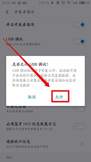 9、接着,我们会收到"允许USB调试"的提示框,点击"确定"按钮;