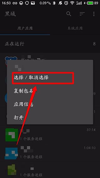 15、接着,我们就可以正常的进入黑域了,点击某个你想不让它后台运行的应用;