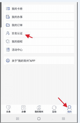登录账号成功后,点击我的,点击实名认证进入;
