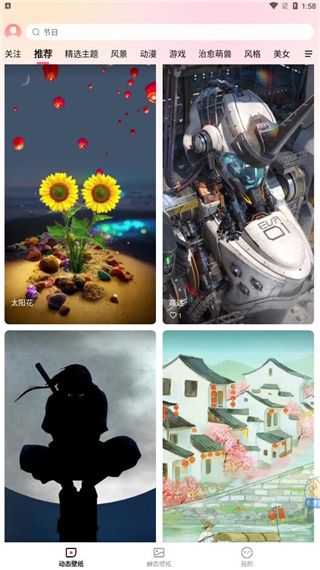 4、通过分类为用户展示不同的类型,每一种分类下方都拥有海量壁纸。