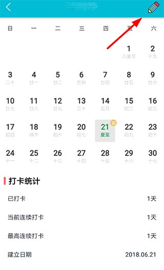 3、当然用户还可在日常写打卡日志,记录一些生活趣事,以及擦看当月打卡天数;