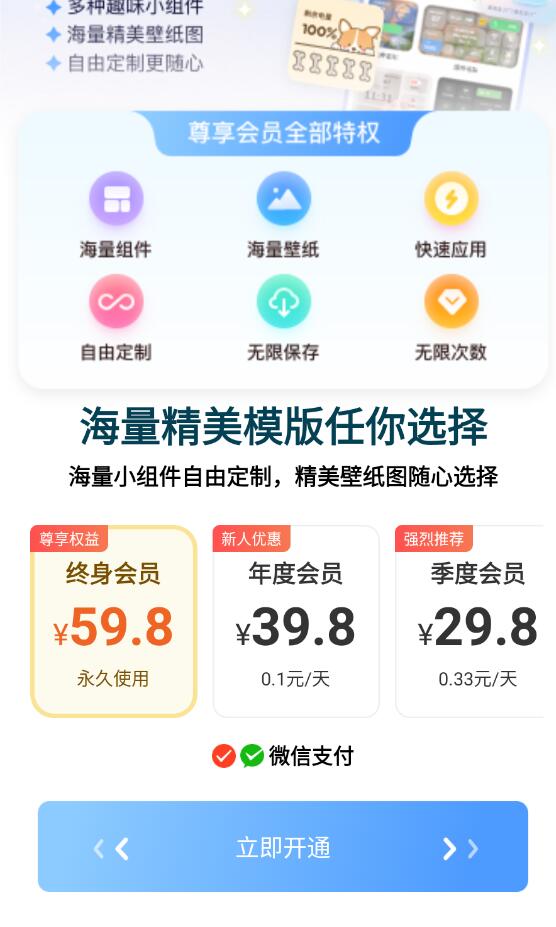 3、多样的小组件主题都是免费提供的,无需会员,在线一键设置使用!