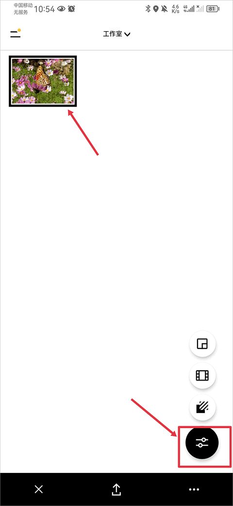 2、然后单击照片后,并点击右下角编辑器按钮