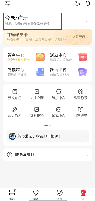 首先在这个站下载安装起点读书app并进入应用我的界面中,随后点击左上角的图标。