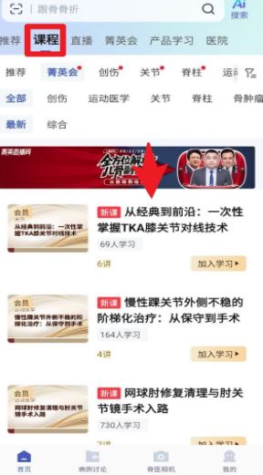 与权威专家及国内顶尖医院合作,提供覆盖临床理论、疾病诊断、围手术期管理、手术实操和术后康复全流程的课程,适合不同层级的骨科医生提升其临床诊疗技能。