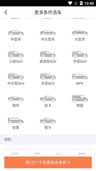 4、点击更多可以设置多种条件进行筛选,有价格区间的设置,车辆级别的设置,还有车子的国际,自动还是手动,排量等等。