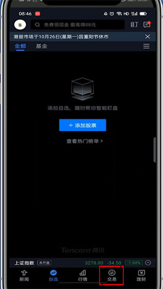 1、首先在界面下载并且打开腾讯自选股app