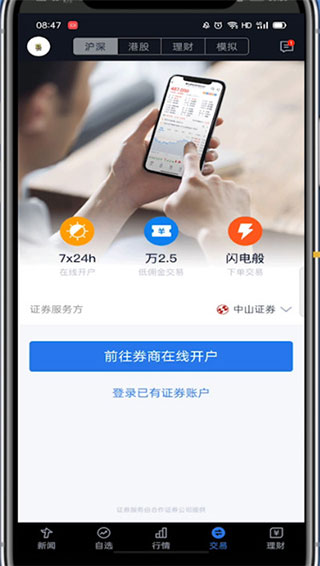 便捷做交易沪深交易支持由品牌合作券商提供7*24小时在线开户服务,支持沪深港股市场多家品牌合作券商提供在线便捷交易服务。