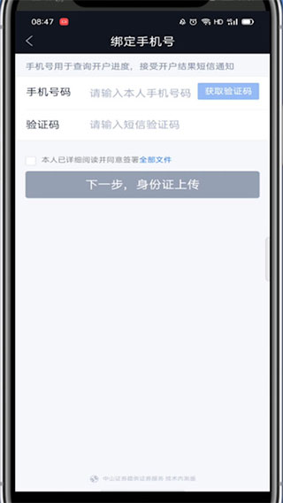 4、在界面中输入手机号验证后进一步验证身份即可完成在线开户