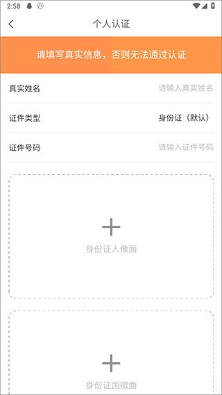 3、填写自己的个人信息,上传自己的身份证证件照,点击提交后,等待系统通知就表示认证通过了。
