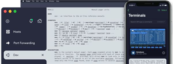 3、上都可以使用Termius享受精美的手工界面支持SSH、Mosh和Telnet会话。