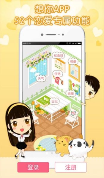 想你app是一款非常好用的社交类软件,很多情侣苦于异地恋,虽然双方相距甚远,但是两者的爱却不会相减,今天小编带来的这款软件就会帮助到广大异地恋情侣。APP功能强大,如果你无时无刻都在想念你的另一半,你就可以邀请他一起使用想你,在这里你们将会缩短距离,体验线上同居。另外,APP内你们都会有一个虚拟形象,你们可以进行装扮,设置纪念日、聊天、逛街等,互动性极强,仿佛他(她)就在你的眼前一般。同时,APP的画风设计也十分的Q萌,为你们的爱情添砖加瓦。除此之外,游戏的温馨玩法也非常丰富,你们甚至可以一起养宠物,留下自己美好的回忆。如果你和另一半属于异地恋,那么想你这款APP非常适合你们,让双方的感情迅速升温,提要爱情的甜蜜,快来下载试试看吧!