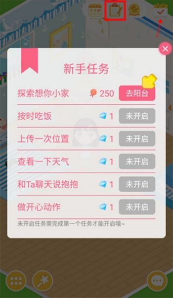 6、点击想你右上角,选择第二个就可以看到自己的任务啦,一起完成更多任务就可以获取更多的奖励哦。