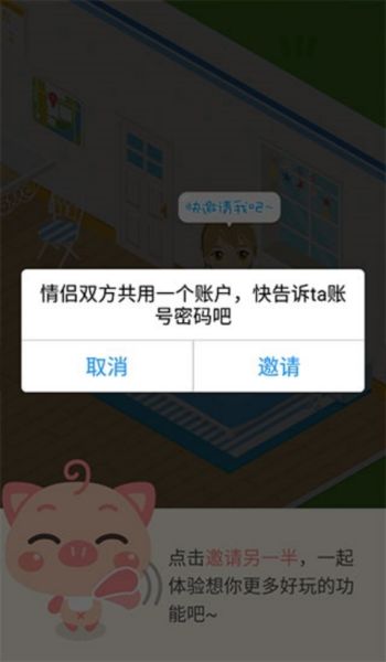 1、如图示可以看到伴侣的卡通小人上显示"快邀请我吧",点击后选择"邀请"。