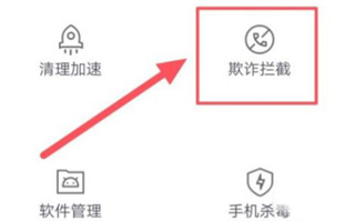 1、点击欺诈拦截打开360手机卫士,点击下面一栏的欺诈拦截;
