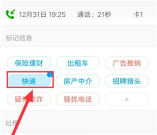 4、点击标记在原来号码标记的地方,重新点击一下标记就可以了。比如原来对这个号码标记的是快递,在快递上重新点一下就可以取消标记了。