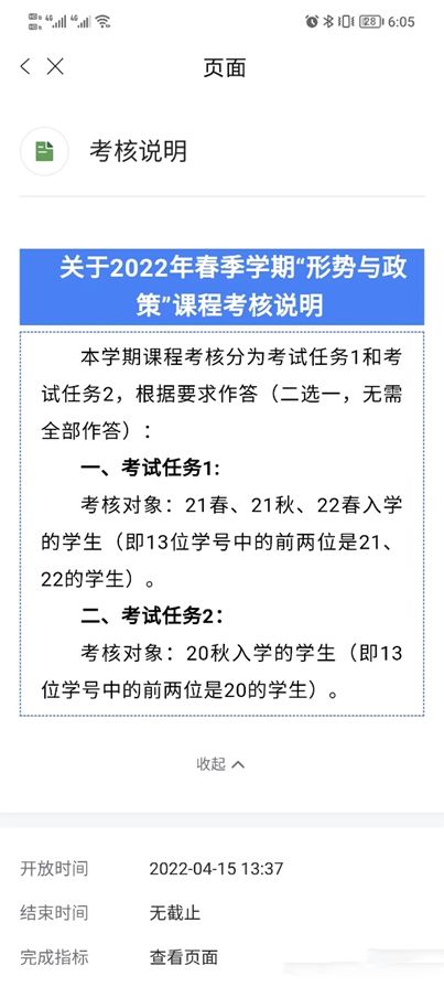 2、在考核说明当中能够详细了解到本次考核的详细信息。