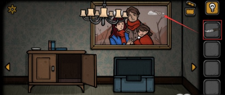 13.完成窗下小柜子上的机关(点击连线两边的图案),得到小刀。