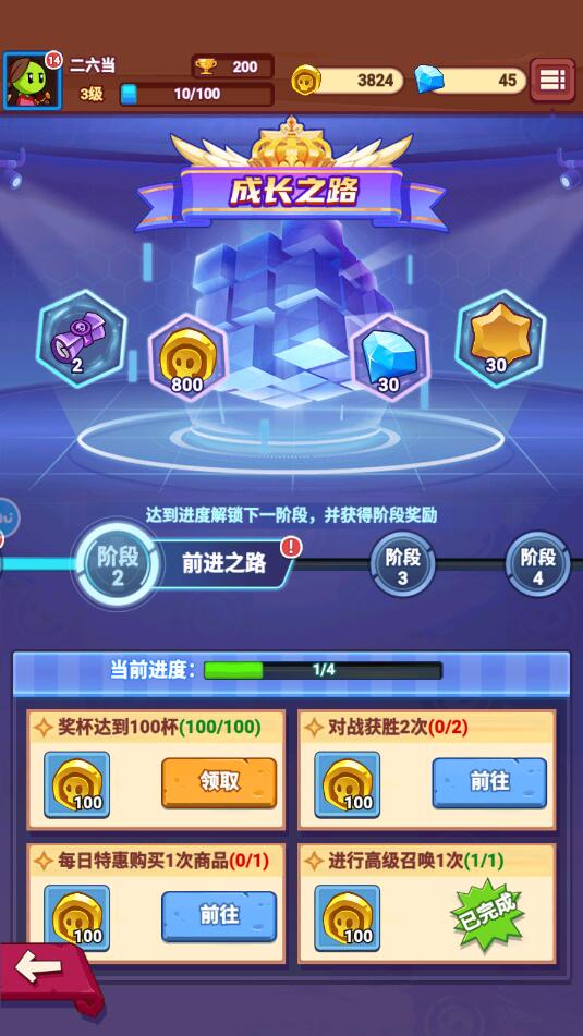 进入到成长之路游戏界面,我们可以通过完成相应的任务来解锁进度,并且能够获得对应的阶段奖励。