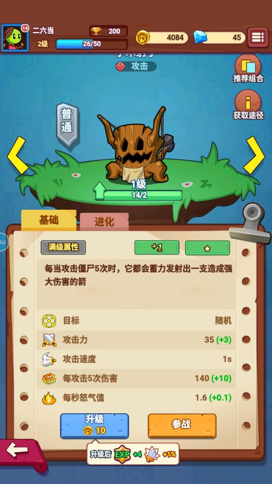 我们可以通过消耗金币的方式来对植物进行升级,除此之外,还可以通过进化来提升基础攻击力