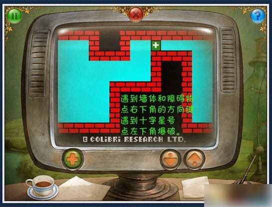 14、左走2步,放入操纵杆,开始谜题(图13).看电视机,开始游戏(图14)拿走红色三角按钮。