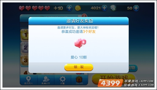 1.邀请3名好友,就可以获得10个爱心奖励。