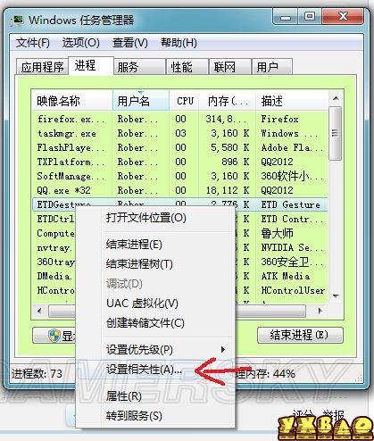 7、功夫不负有心人,经过两小时试验,发现原来的2k12效果全开不开,2k13竟然最低效果都卡,原因是2k13的CPU多核没有用上,但网上修改Config试验了一下,也没有效果。最后在任务管理器中重新进行关系设置尽然就一点都不卡了。分享给XP用户。具体操作方法:已浏览器进程为例(2k13.exe类似)进行修改,首先把CPU 1 CPU2勾选取消在进入游戏,然后再还原,即可激活三个CPU,如果不这样,其实默认游戏是没有激活的。