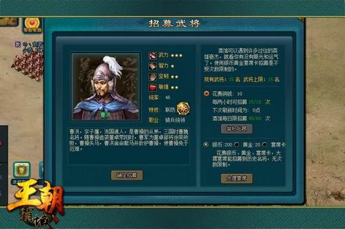 每个武将都有每个武将的价值所在,只要我们认真去发现。扬其长,避其短,达到最优效果,都会有意外收获。《王朝霸域》更多的名将等待你的招募。