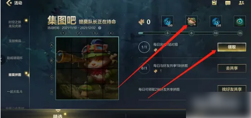 进入活动后,找到提莫拼图活动,完成里面的任务即可领取提莫拼图;