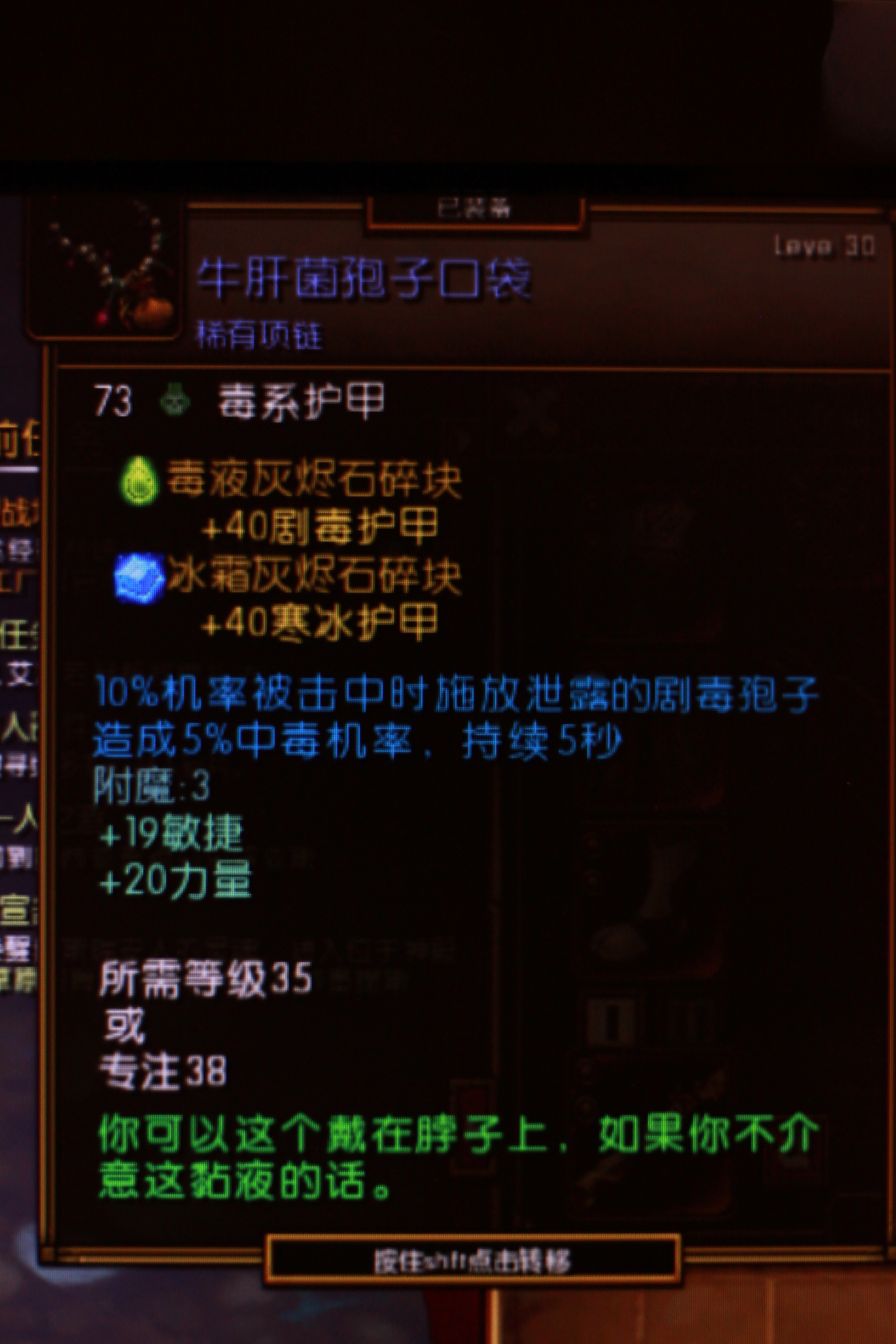 接下来——项链,不是橙色的,这装备纯粹是为了附魔的属性点穿的。