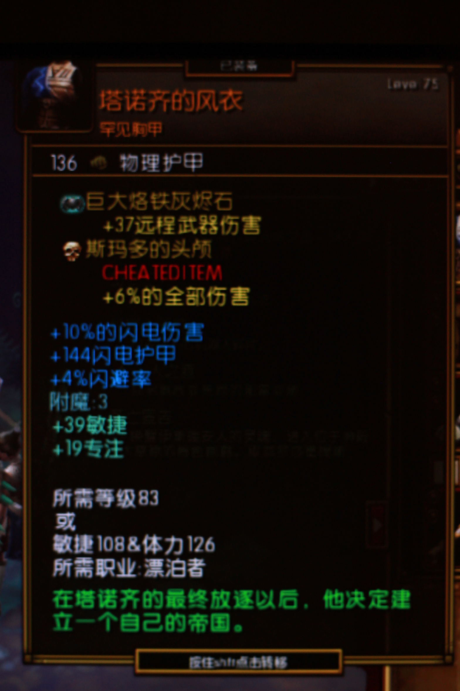 接下来是胸甲——塔诺齐的风衣,又是4%的闪避