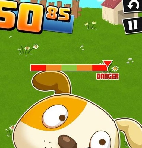 首先我们看下骨头上面的力度条,有三种颜色,也就是最两边的红色以及靠内的橘黄色还有最中间的绿色。其实我们要做的就是让骨头始终保持在绿色框或者是橘黄色框里面,如果不小心来到了红色框,那么狗狗头上的骨头很可能就要掉下来了。