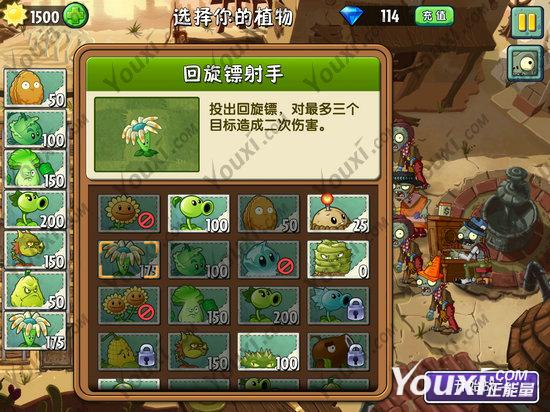 这一关我们只需要选择三株植物:回旋镖射手、火龙草和坚果。