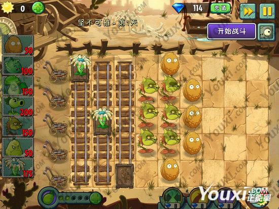 植物大战僵尸2狂野西部坚不可摧第一天攻略_坚不可摧第一天