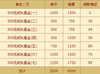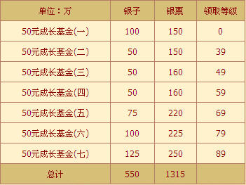 的确在充值返还的巨大光环下吸引到了不少RMB用户。但在返利的光环殆灭之际,又拨云见雾来了个大手笔弄出个成长基金。相比于以往的每月分期返还的方式,变成了现在一次性按照级发放的方式。以往的0.3倍的增益返还一跃变成了1.7倍之多。对于新区的RMB用户来说真是可喜可贺。