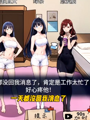 1、进入游戏我们首先将衣柜里的黑色裙子和黑丝、卷发棒、紫色手机壳、高跟鞋的手机移给右侧的女生;