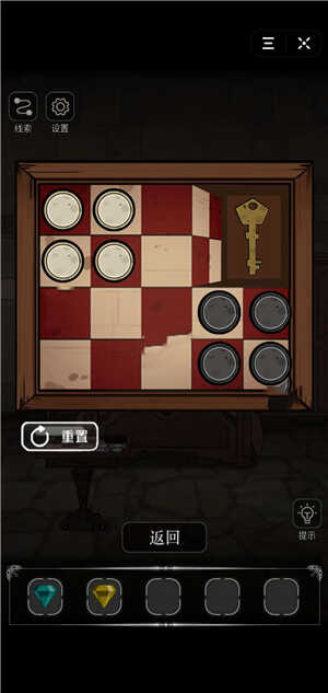 13、在完成黑白棋子棋盘的小游戏后我们可以得到一把衣柜的钥匙,玩这款小游戏也很简单,只要你会玩中跳棋就能轻松取胜;