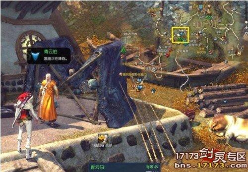 在版本更新后,血浪鲨湾4/6人血浪鲨湾副本开启需要完成前置任务“剑灵再次见到的隐者”,接引的NPC位置在海岸客栈的青云伯出,如图所示位置。