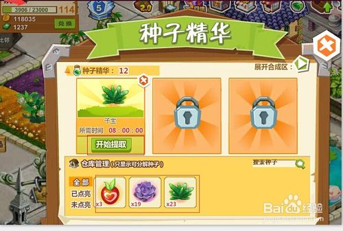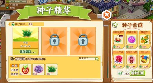 第四步:种子精华是用来兑换很多稀缺的种子,当精华达到一定数量的时候可以点击展开合成区里面的稀缺种子进行兑换了。