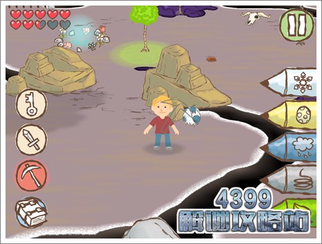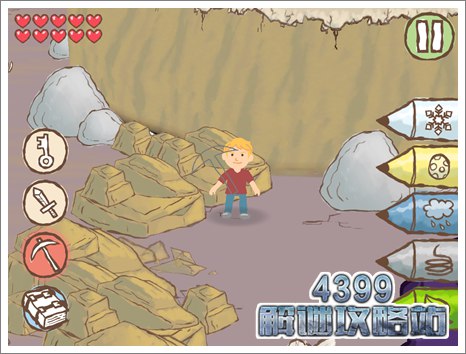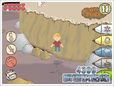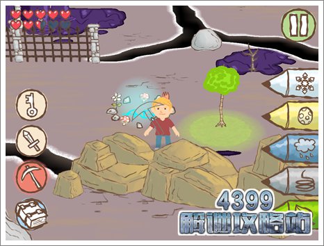 1、第一块拼图和颜色毛球就在重生点的下方,使用锄头打开石头即可获得毛球和拼图。