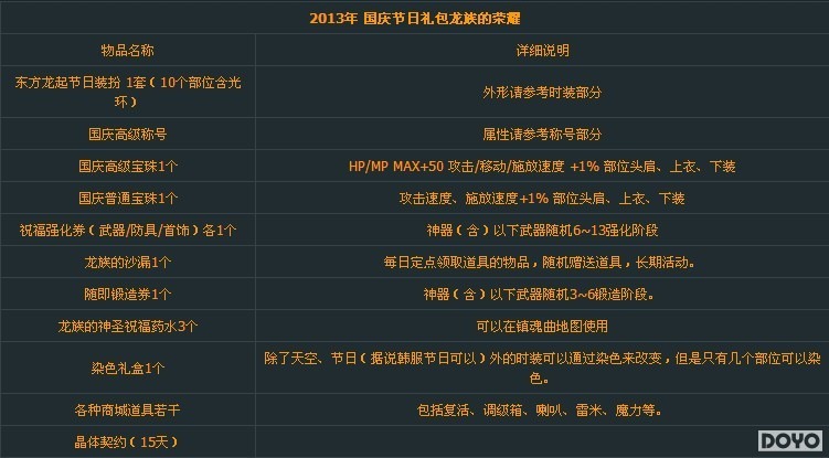DNF2013年国庆礼包内容公布_dnf2013国庆礼包