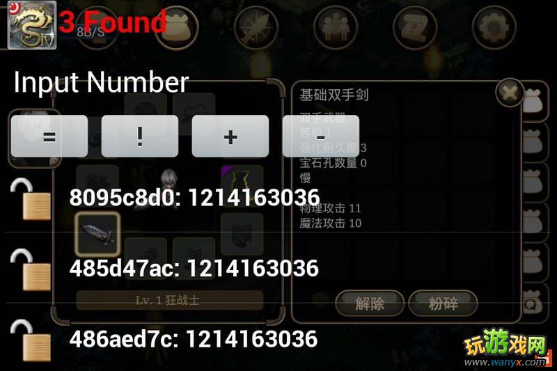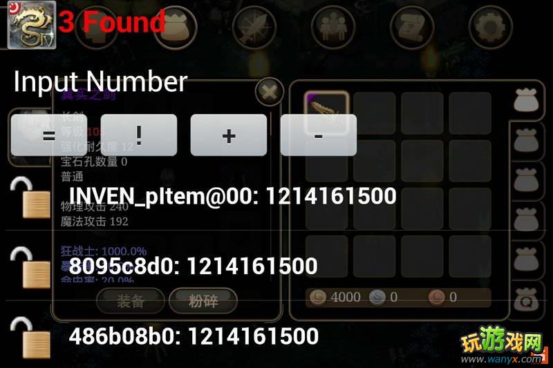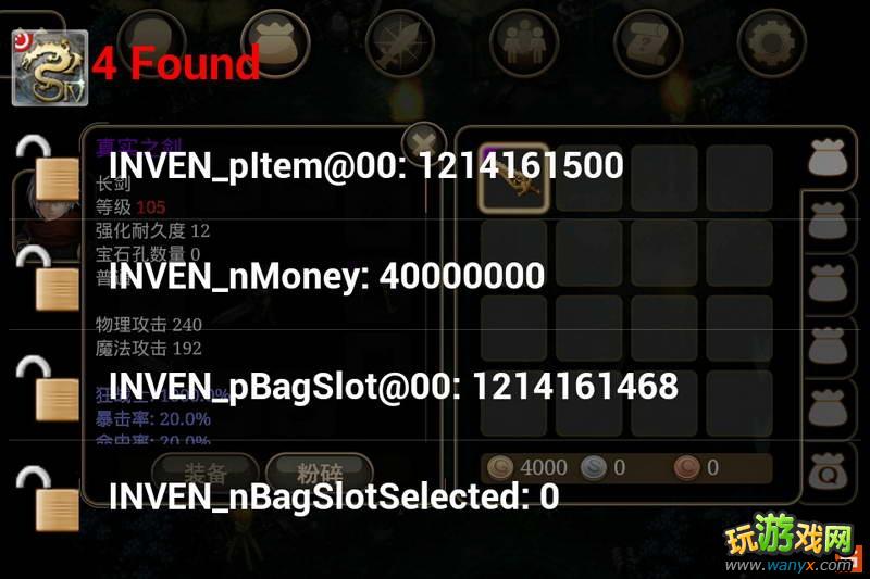 注释:注意光标位置光标在第一格物品上时用cih第三项搜inven记住第一个数字b,然后重置在cih第一项搜索刚才记下的数值b,出现图2然后光标移动到身上已装备物品上8开头地址数字变化图3,记下变化数字a,重置cih搜a出现图4将4开头地址改为数字b . ok了