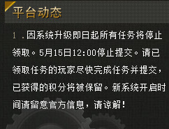 1 .因系统升级即日起所有任务将停止领取。5月15日12:00停止提交。请已领取任务的用户尽快完成任务并提交,已获得的积分将被保留。新系统开启时间请留意官方信息,请谅解!